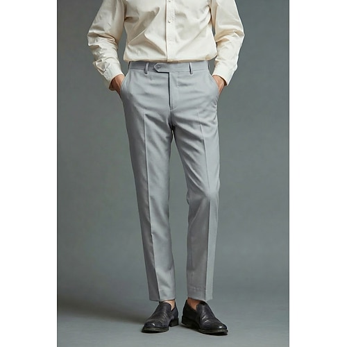 Uomo Cotone Lino Pantaloni Eleganti Affari Ufficio Carriera Leggero Classico Formale Nero Grigio chiaro Primavera Estate Pantaloni Tinta unica Vestibilità su misura Lungo Inelastico
