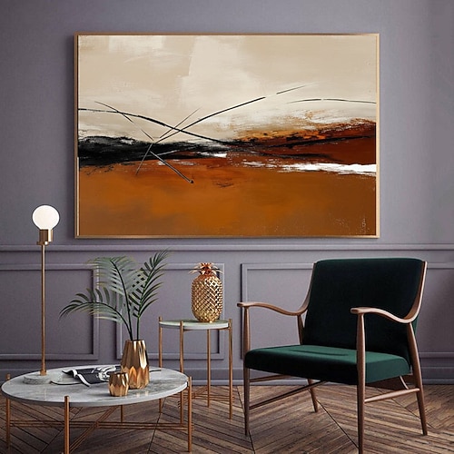 Quadro su tela, dipinto astratto fatto a mano, paesaggio marrone e nero, pittura ad olio, arte astratta marrone, decorazione murale per soggiorno, arredamento per la casa
