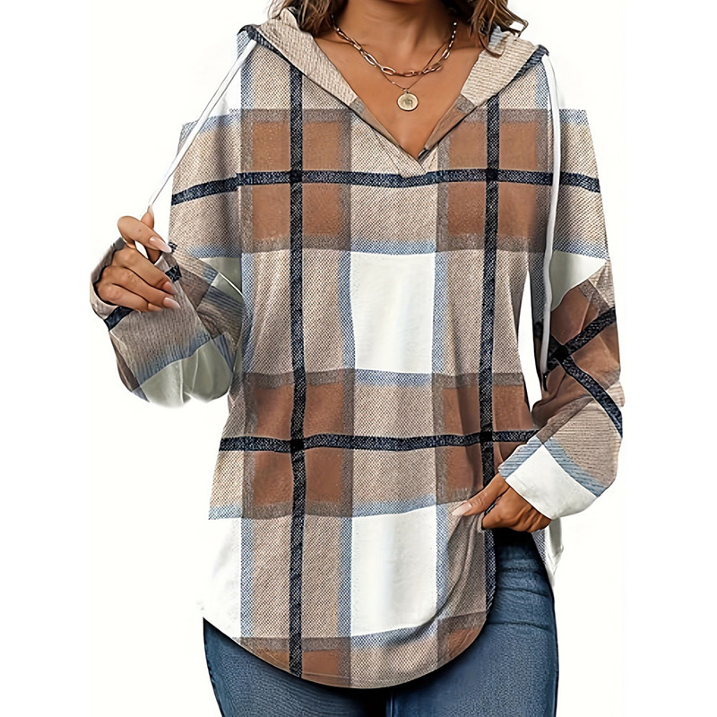 Women's Pullover Hoodie Sweatshirt Plaid Casual Long Sleeve Hooded Regular Tops Street Dailywear Print khaki Fall Winter