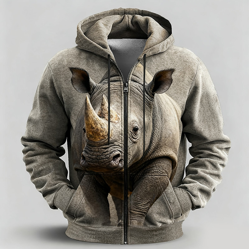 Men's Owl Rhinocero Hoodie Jacket Sweatshirt Fantasy All Over Print Zip Vacation Going out Streetwear Brown Gray Zipper Fall Winter Designer S M L XL XXL XXXL