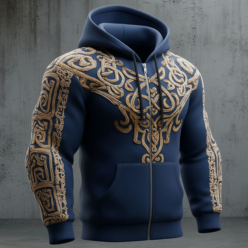 Men's Optical Illusion Celtics Hoodie Jacket Sweatshirt Viking 3D Fantasy All Over Print Long Sleeve Zip Streetwear Vacation Going out Blue Black Red Brown Zipper Fall Winter Designer S M L XL XXL