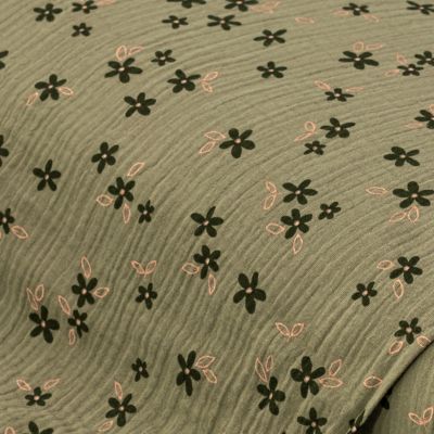 Tissu mousseline/double gaze "fleurs", olive/noir