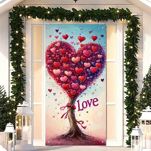 San Valentino Poster Copertura della porta Banner per esterni Amore Cuori Carino Romantico 3D Da serata Dormitorio Sfondi di ripresa Porta d'ingresso Decorazione per proposta di matrimonio