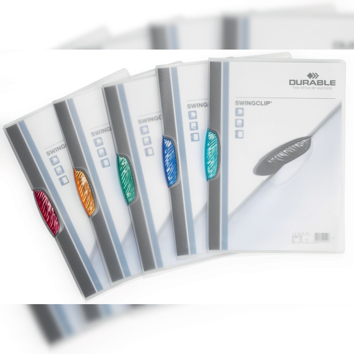 Durable Klemmmappe Swingclip A4 tranzluzent PP bis 30 Blatt farbig sortiert VE=5x5 Stück