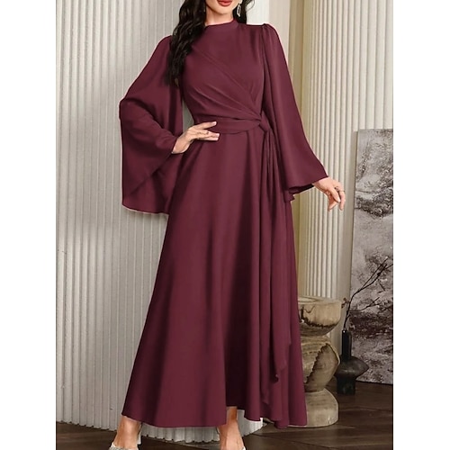 Per donna Blu Nero Vino Inverno Abito maxi Abito Pieghettato Compleanno Formale Formale Vestibilità regolare Semplice Collo Alto