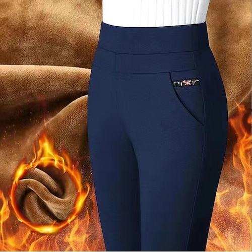 Per donna Pantaloni in pile da salotto Pantaloni a gamba dritta con tasche Antivento Caldo Vita Alta Palestra All'aperto Corsa Pantaloni Tinta unica Blu marino Grigio Gli sport Abbigliamento sportivo