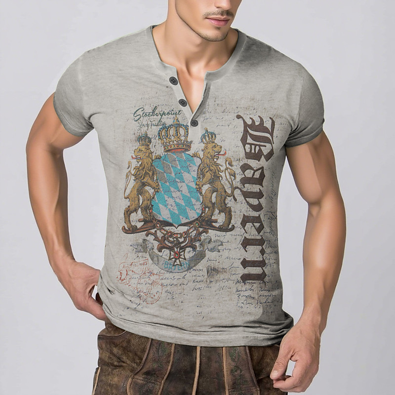 Bavarian Munich German T-shirt Sleeve Lederhosen T-shirt Match Henley Shirt Deer Graphic for Men's Adults' 3D Print for Carnival Oktoberfest Beer Party