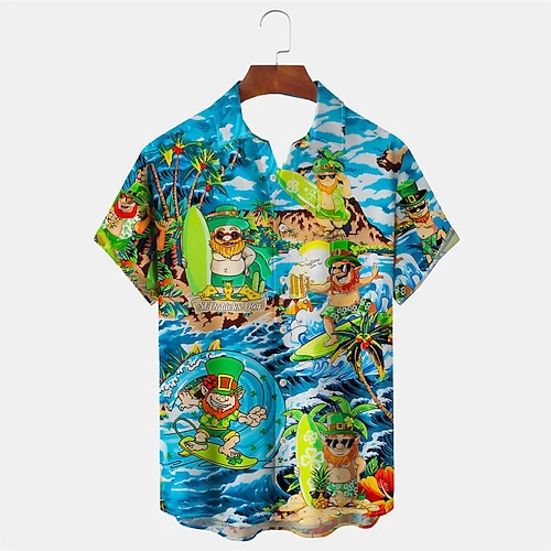 giorno di san patrizio quadrifoglio camicia casual da uomo abbigliamento quotidiano per uscire nel fine settimana autunno/autunno couverture maniche corte verde militare, blu, verde menta s, m, l
