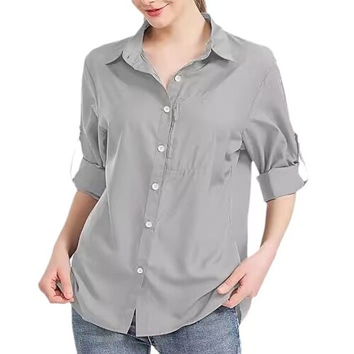 Per donna Camicia Blusa Semplice Elegante Affari Manica Lunga Colletto a Camicia Top Regolari Lavoro Quotidiano Ferie Bottoni Bianco Rosa Verde militare Blu turchese Grigio Estate