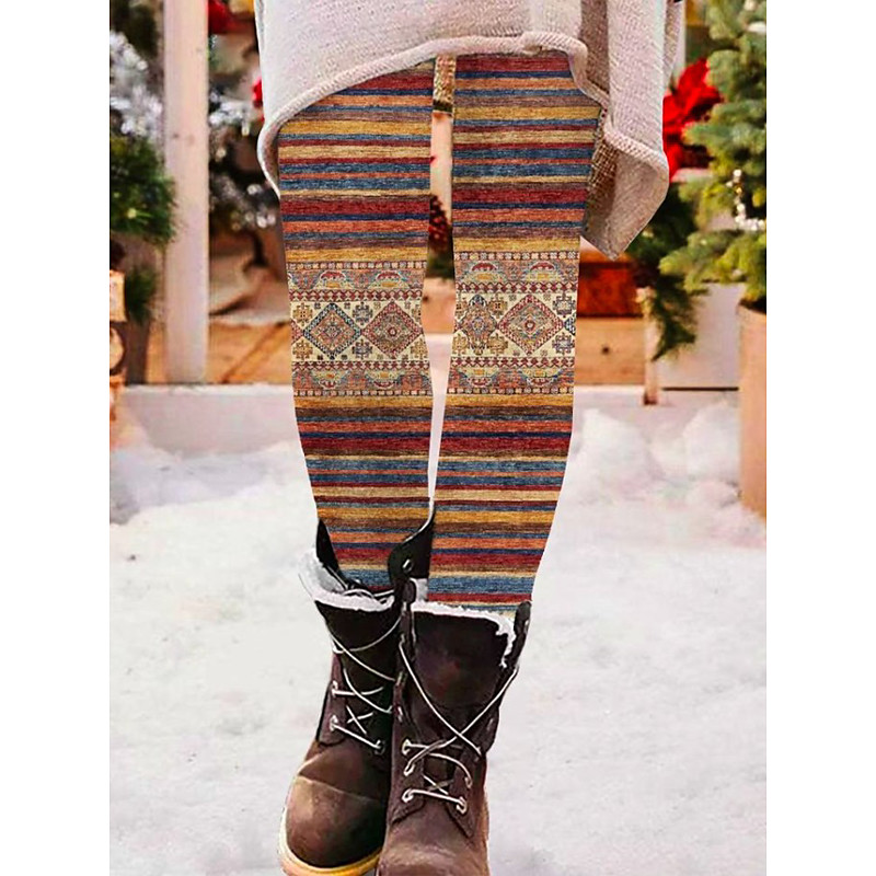 Women's Leggings Vacation Vintage Fashion Full Length High Waist Graphic Paisley Abstract Printing Thermal Warm Soft Breathable Stretchy Outdoor Vacation Street dark brown Dark Gray Black Red Summer