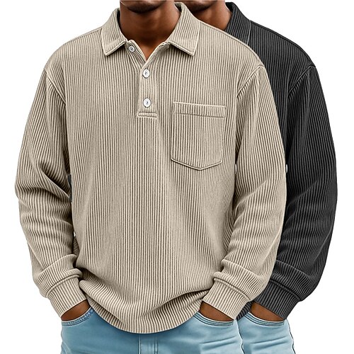 Per uomo Camicia di Velluto a Coste Testurizzato Casuale Sportivo Bavero Manica Lunga Moda Essenziale Blocco di colori 2 Pezzi Caldo Autunno Primavera Autunno Tutte le stagioni Vestibilità regolare