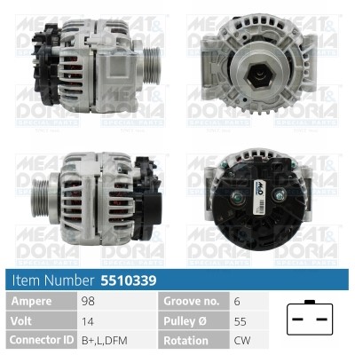Laturi 14V 98A Meat & doria 5510339 - dacia, renault - OE 77 00 429 310, 77 00 434 900, 77 01 473 636