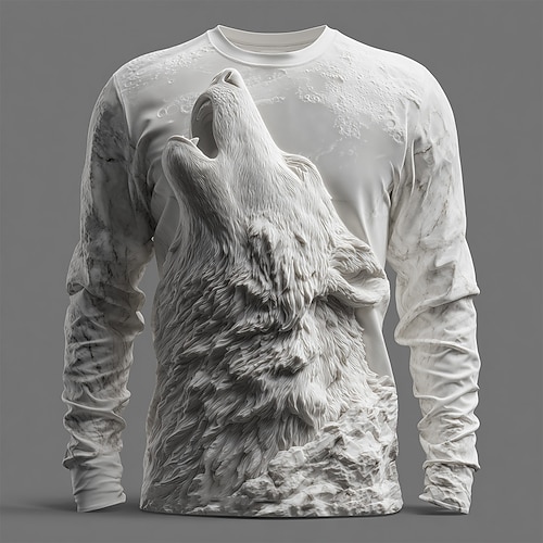 Per uomo Illusione ottica Lupo Maglietta Manica Lunga maglietta Stampa 3D Girocollo Camicia Moda Esagerato 3D Streetwear Quotidiano Bianco 1 Bianco Bianco 2 Estate Primavera Autunno Abbigliamento S M