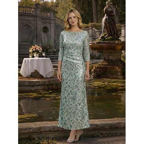Linea ad A Lunghezza alla caviglia Lunghezza Tè Abito Derby Abito da cerimonia per signora Manica 3/4 Girocollo Elegante Vintage Semplice Formale Derby del Kentucky Con Paillettes con Paillettes