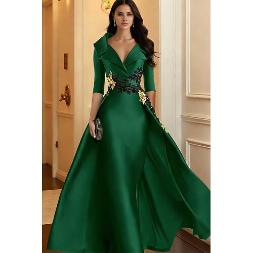 Per donna Abito da smoking Linea ad A Matrimonio Formale Ospite di nozze Raso Glitter Elegante Scintillante Manica 3/4 plissettata Lunghezza al pavimento Revers dentellati