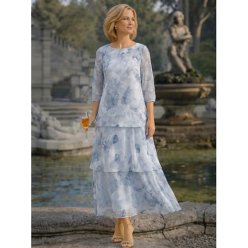 Linea ad A Lunghezza al pavimento Lunghezza alla caviglia Abito Formale Abito da cerimonia per signora Manica 3/4 Scollo a Barca Elegante Vintage Casual Formale Chiffon Jacquard con Stampa floreale