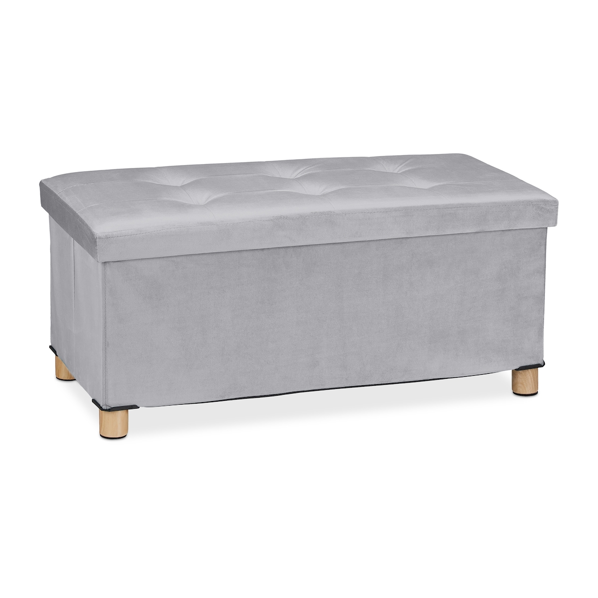 Relaxdays Sitzbank mit Stauraum, Polster, Samtbezug, Holzfüße, bis 120 kg, faltbar, Sitztruhe HBT: 34x76x38 cm, hellgrau