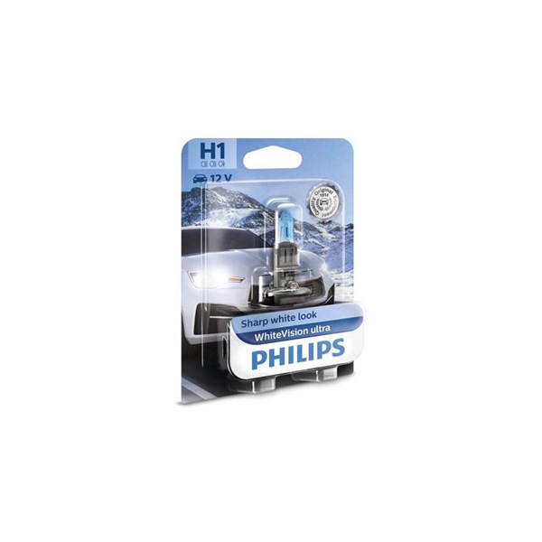 Halogeenilamppu PHILIPS WhiteVision ultra H1 P14,5s Philips 12258 - aprilia, bmw, cagiva, ducati, gilera, ktm, moto guzzi, peugeot, piaggio, yamaha -