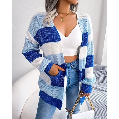 Per donna Felpa Cardigan Elegante Moda Streetwear Tinta unica Blocco di colori A righe Scollo a V Tasca Lavorato a maglia Manica a Lanterna Manica Lunga Top lunghi Maglia All'aperto Quotidiano Uscire