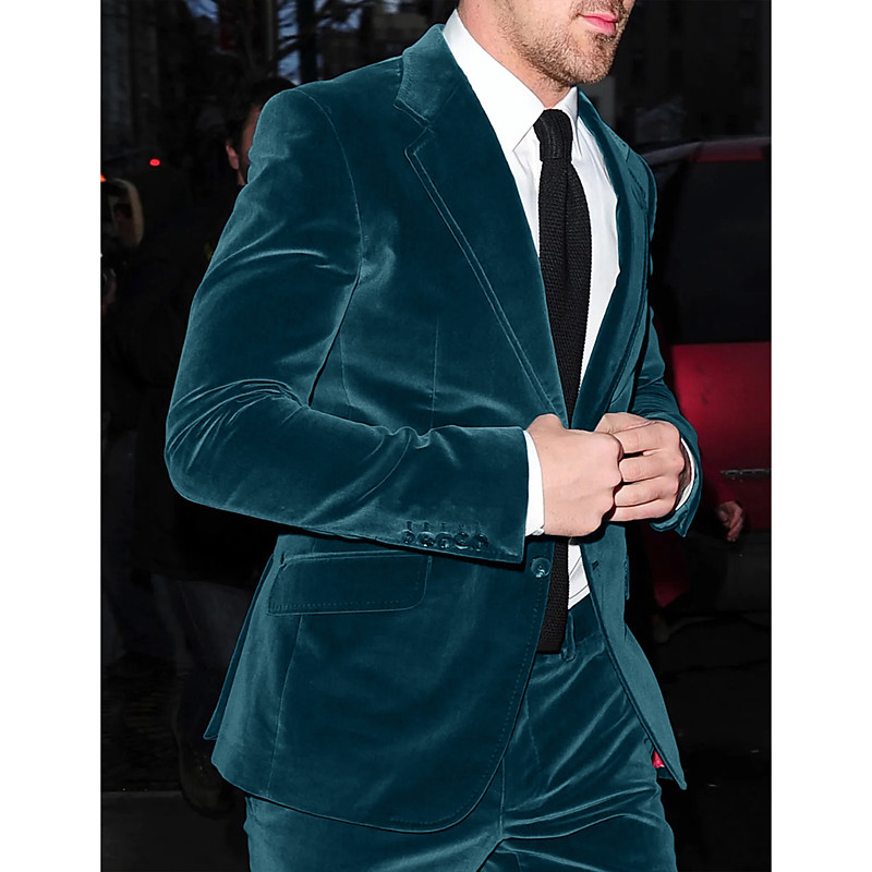 Men's Party Suits Notch Notch Lapel Blue green Black Fashion Casual Solid Colored Slim Fit 2 Piece Single Breasted Two-buttons