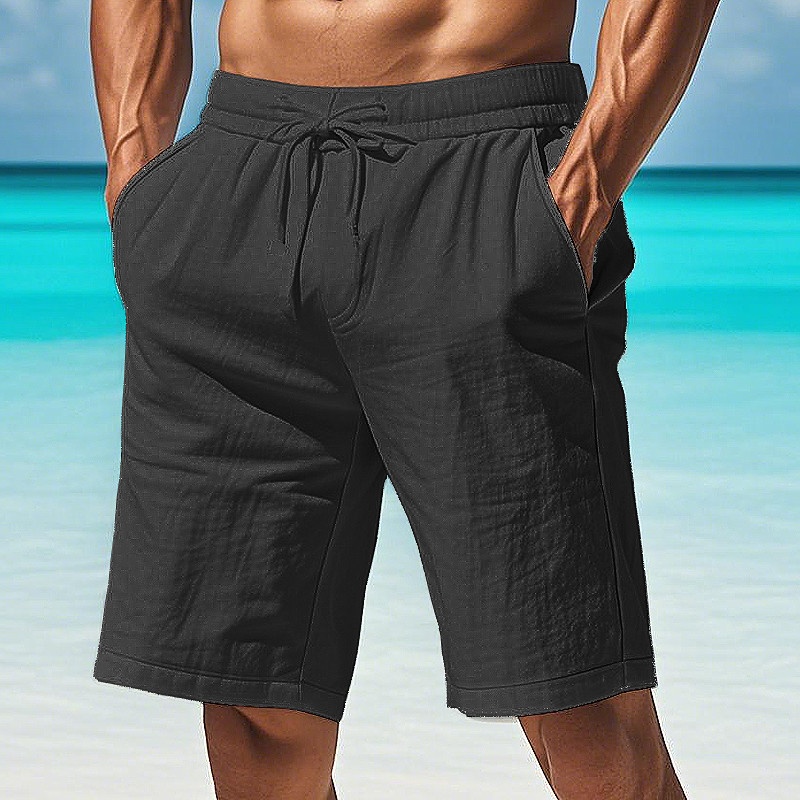 Men's Cotton Linen Shorts Pocket Drawstring Elastic Waist Plain Comfort Breathable Short Vacation Black White
