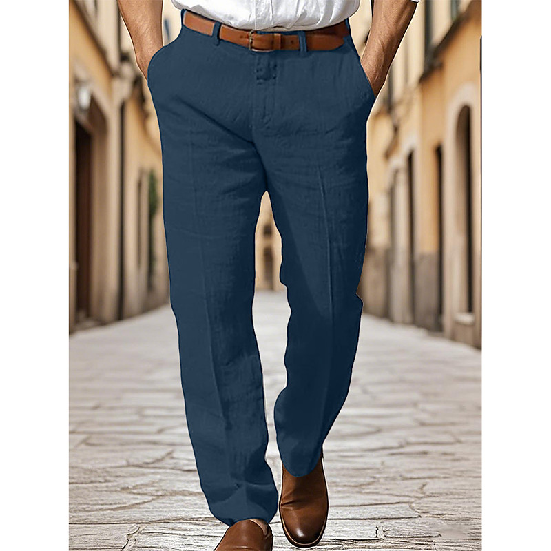 Men's Trousers Summer Pants Beach Pants Pocket Plain Comfort Soft Outdoor Daily Going out Fashion Casual White Navy Blue