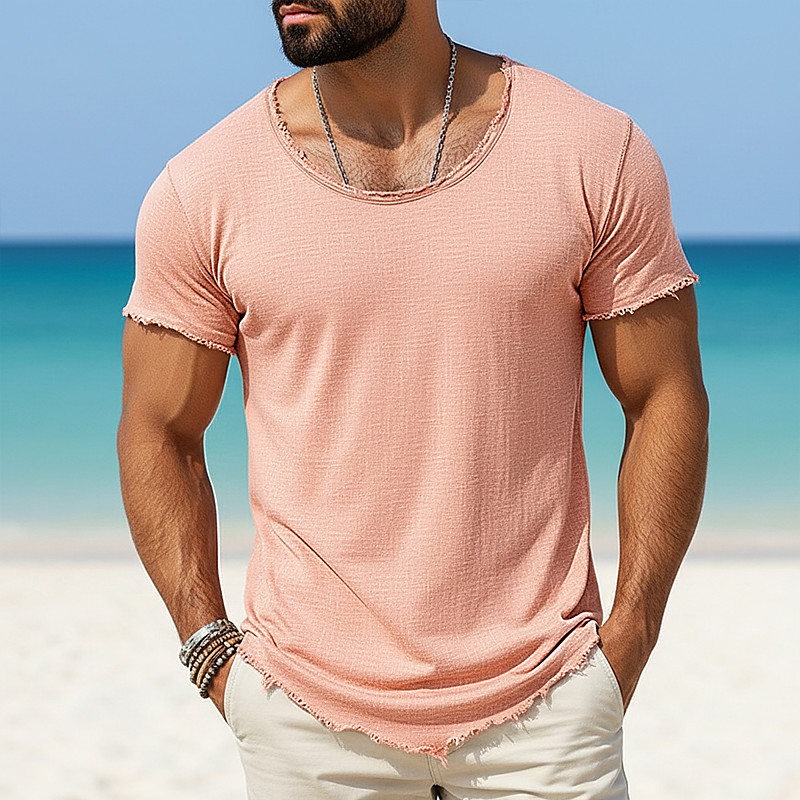 Men's Tee Top Linen T-Shirt Short Sleeves Crew Neck Summer Plain Fashion Designer Basic Vintage Soft Plain Casual Vacation Street Light Blue Black White Top Tee for Men