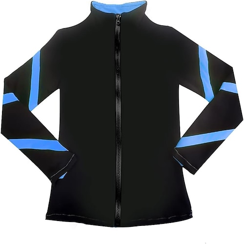 giacca in pile per pattinaggio artistico, giacca da pattinaggio sul ghiaccio da donna e da ragazza, top nero elastico, abbigliamento da pattinaggio per competizione, termico, caldo, con