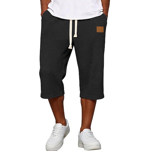 Per uomo Pantaloncini Waffle Pantaloni capri Shorts Pantaloncini casual Tasca Elastico in vita Semplice Comodità Traspirante Lunghezza al polpaccio Casuale All'aperto Spiaggia Vacanza Moda Nero Bianco