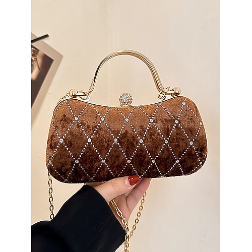 borsa da sera trapuntata in velluto da donna con dettagli di diamanti: elegante borsa a tracolla per feste di Natale, riunioni di festa e occasioni speciali
