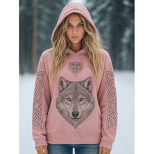 Per donna Felpa con cappuccio Grafico Animale Casual Manica Lunga Con Cappuccio Top Regolari Abbigliamento da sera Streetwear Abbigliamento Quotidiano Patchwork Rosa Primavera Autunno Inverno