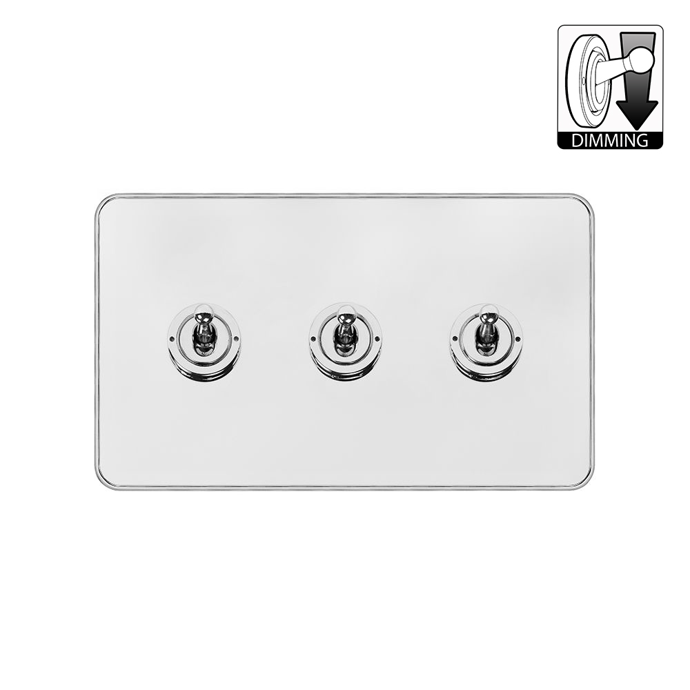 Soho Lighting Lighting White Metal & Polished Chrome With Chrome Edge 3 Gang Dimming Toggle Switch