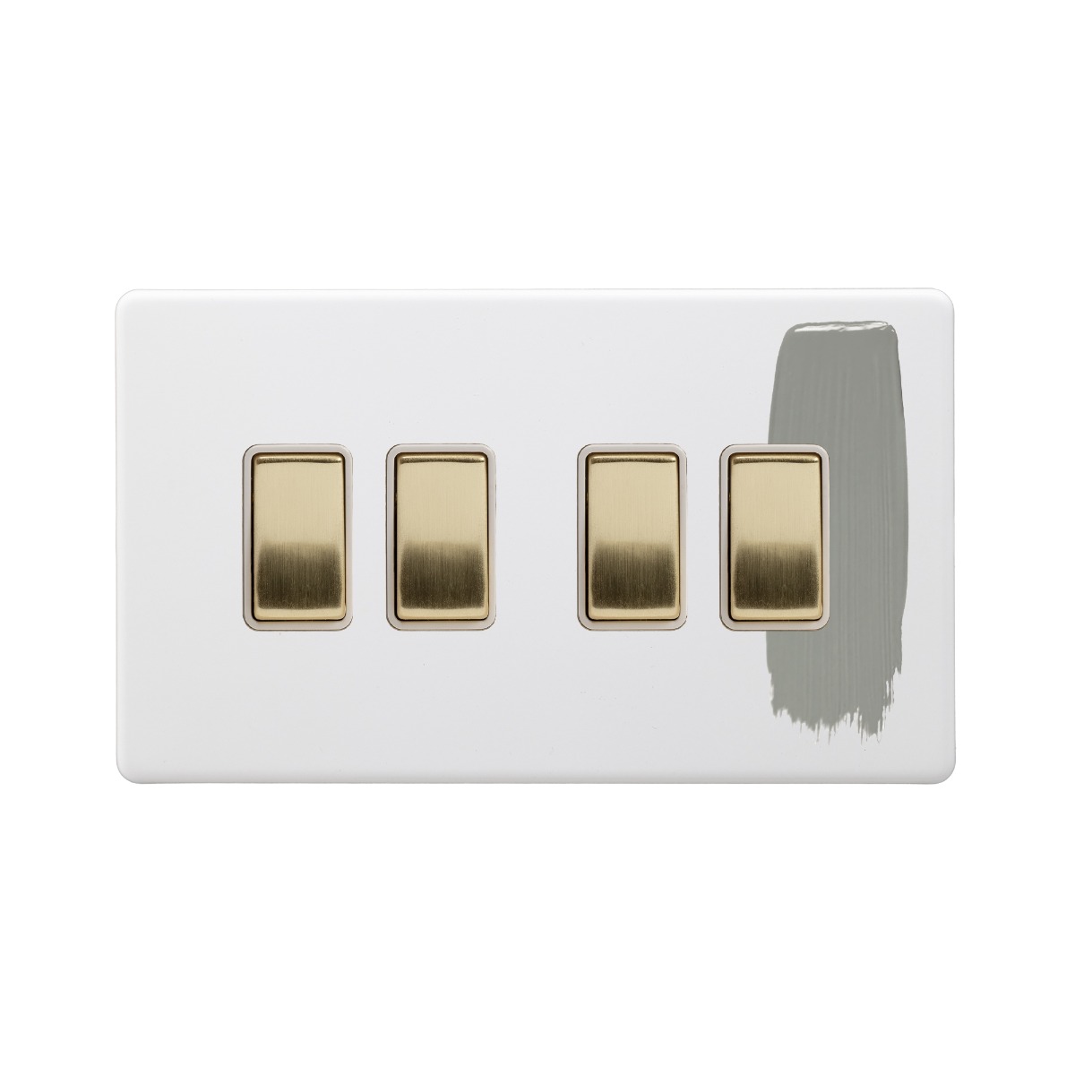 Soho Lighting Primed Paintable 4 Gang Intermediate switch with Brushed Brass Switch with White Insert - Size: H 86mm X W 146mm X D 4.5mm