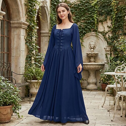 Medievale Rinascimento Elegante Lunghezza alla caviglia Vestito Lunghe Fata Corsetto Tinta unica Costume Per donna Fantasia Halloween Carnevale Mascherata Fiera Rinascimentale Festa a tema retrò