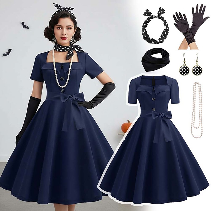Retro Vintage 1950s Grease Outfits A-Line Dress Swing Dress Flare Dress Fancy Dress Women's Halloween Carnival New Year Masquerade Retro Theme Party Adults' Dress More Accessories