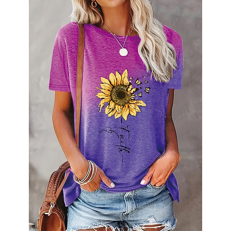 Women's T Shirt Casual Print Short Sleeve Regular Tops Daily Purple Green Gray Summer