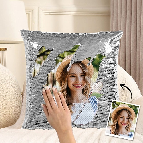 cuscino magico con paillettes personalizzato per donna, federa reversibile personalizzata con la tua foto, regalo unico per il suo compleanno o San Valentino