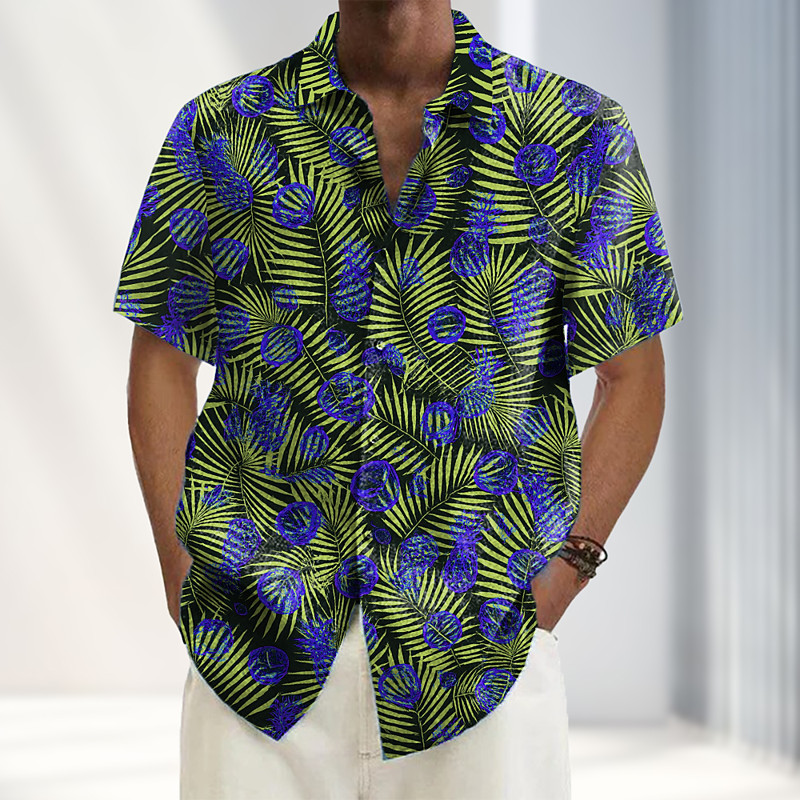 Men's Colorful Mushroom Tropical Plants Shirt Summer Hawaiian Shirt Camp Collar Shirt Short Sleeve Shirt Turndown Designer Beach Holiday Light Green Blue Purple 3D Print S M L