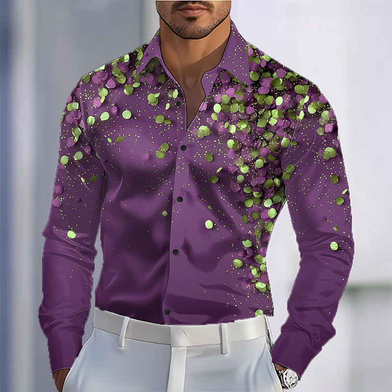 Christmas Men's Sparkling Glitter Christmas Light Shirt Satin Shirt Dress Shirt Long Sleeve Fashion Casual Party Holiday Summer Spring Fall Turndown 3D Print Button Up Shirts Blue Yellow Purple Green
