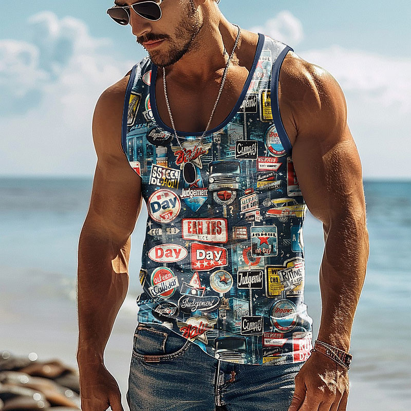 Men's Vehicle T Shirt Vest Top Sleeveless T shirt 3D Print Crew Neck Shirt Vacation Retro Vintage Daily Street Holiday Blue Red Khaki Summer Spring Clothing Apparel S M L XL XXL XXXL