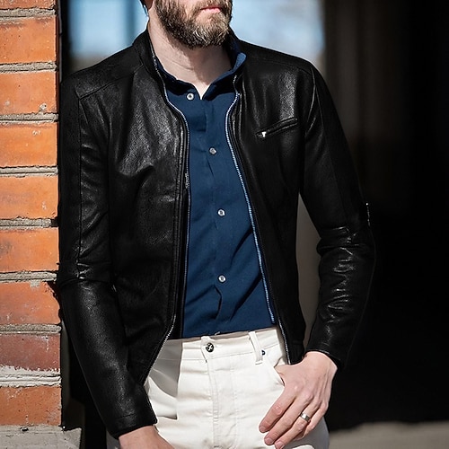 Per uomo Giacca in Ecopelle Giacca di transizione Giacca da Biker Streetwear Casuale Calore Termico Antivento Cerniera Primavera Autunno Tinta unica Tasche Vintage Moda Collo alla coreana Regolare