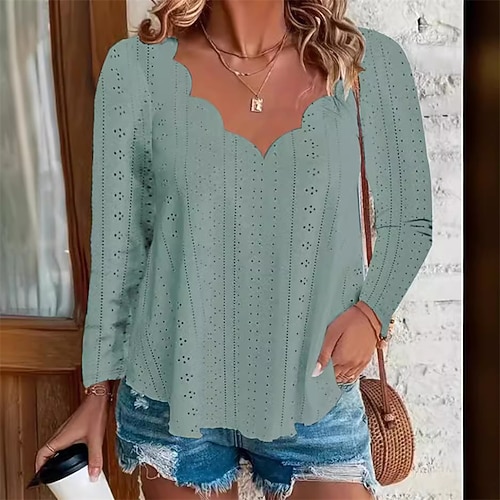 Per donna Blusa Semplice Elegante Vintage Carino Manica Lunga Asimmetrico Scollo a V Top Regolari Lavoro Quotidiano Ferie Arricciato Patchwork Traforato Nero Bianco Rosa Blu Verde Estate Primavera