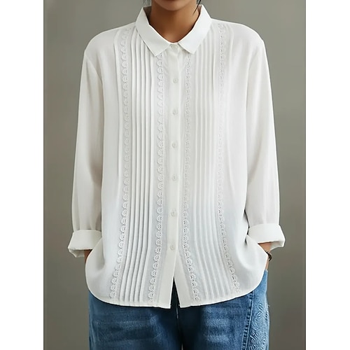 Per donna Camicia Camicia di lino Stampa Quotidiano Elegante Essenziale Manica Lunga Colletto a Camicia Top Regolari Lavoro Quotidiano Ferie Bottoni Bianco Blu Grigio Primavera Autunno