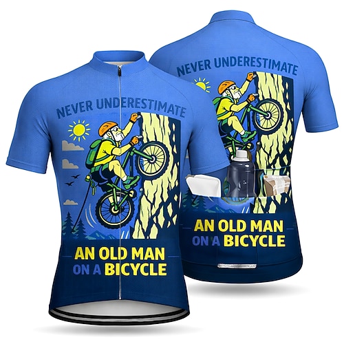 Da uomo Maglia da Ciclismo Maglia da downhill Non sottovalutare mai un vecchio con una bicicletta Manica Corta Bicicletta Maglietta con 3 tasche posteriori Resistente ai Raggi UV Asciugatura Rapida