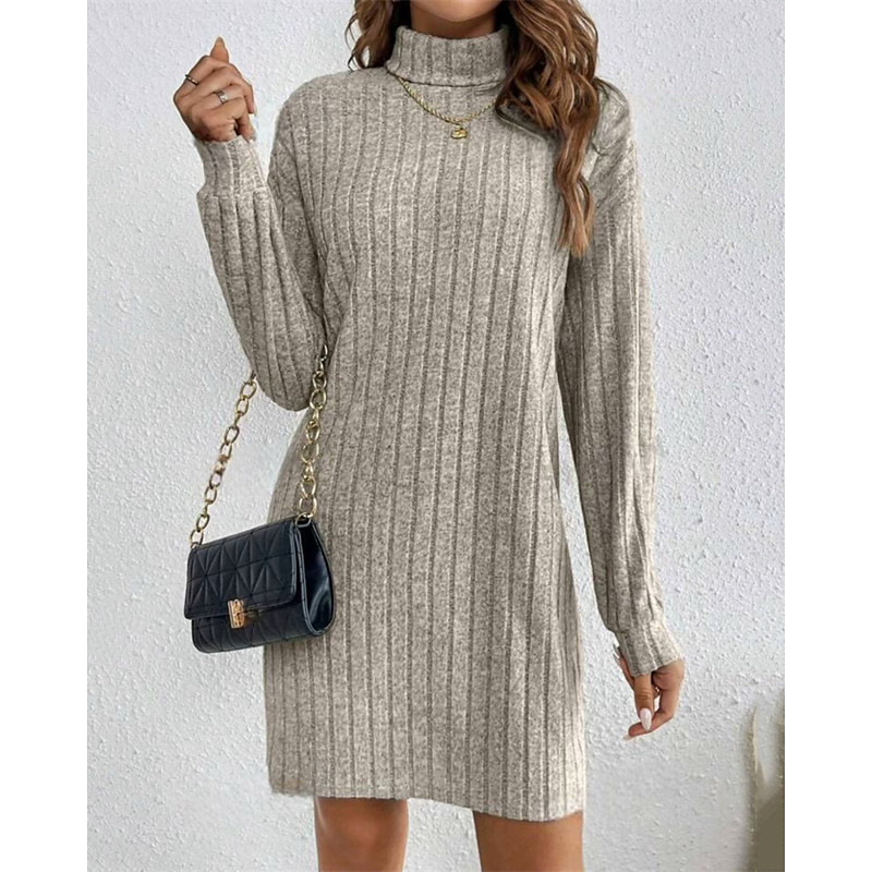 Women's Mini Dress Sweater Dress Casual Dress Fashion Modern Daily Date Weekend Regular Fit Plain Long Sleeve High Neck Black Wine Light Grey Apricot Fall Winter