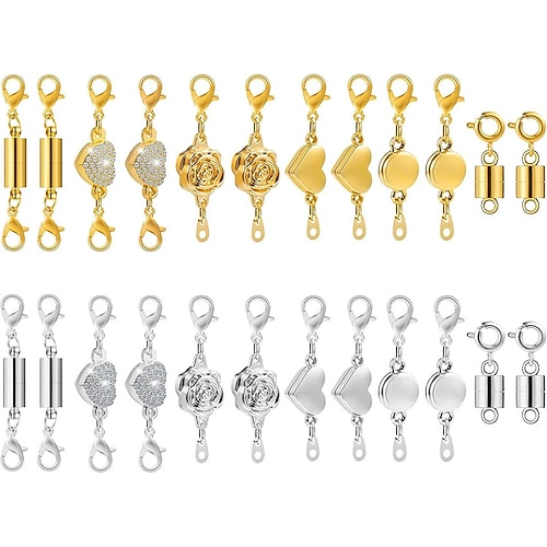 24 pezzi di fermagli e chiusure magnetiche per collane, 6 stili, rotondi, cilindrici, tubolari, connettori con chiusura magnetica per gioielli, estensori per braccialetti con chiusura magnetica per la