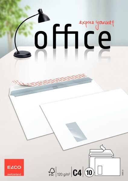 ELCO FSC Briefumschlag im Format C4, mit Haftklebung/Längsseite, Fenster und Innendruck, Hochformat, weiß, 120g, 324 x 229 mm