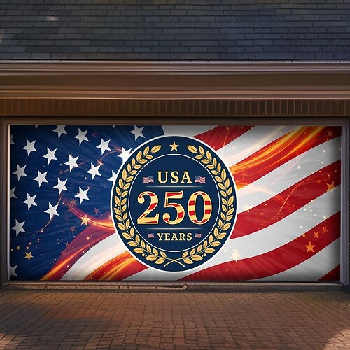 4 luglio 2026 250° Memorial Day Copertura Porta Garage Grande Sfondo Appeso Bandiera Americana Vintage 3D Festa Patriottica Esterno Fondali per Riprese Porta d'Ingresso Decorazione per la Casa
