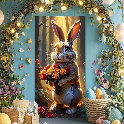 Pasqua Poster Copertura della porta Banner per esterni Rabbit Carino 3D Da serata Dormitorio Stanza per adolescenti Dormitorio universitario Ragazzi Man Cave Frat Bedroom Sfondi di ripresa