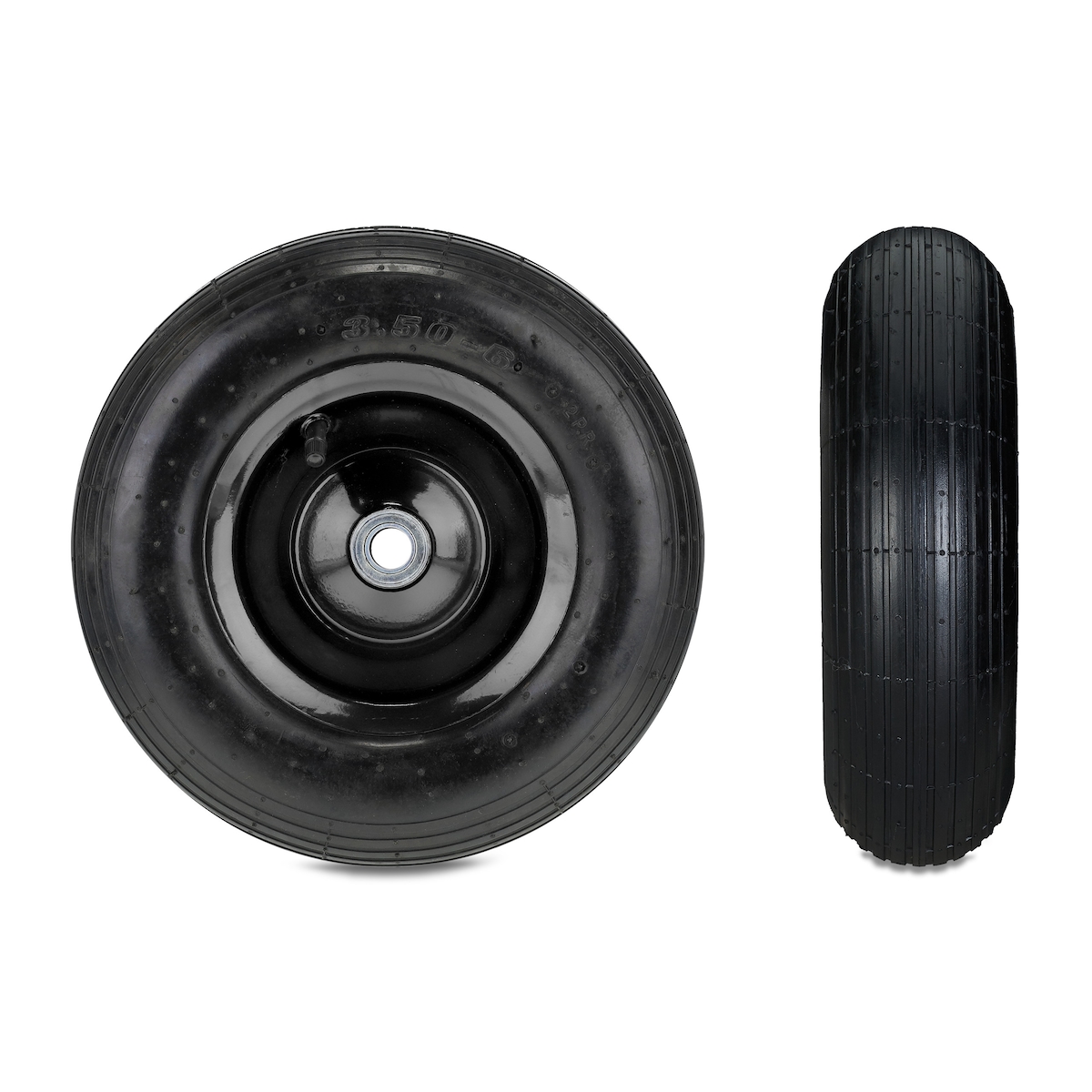 Relaxdays Schubkarrenrad, 3.50-6, luftbereift, 2 PR, Ersatzrad bis 120 kg, Luftreifen mit Ventil, Stahlfelge, schwarz
